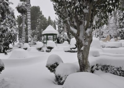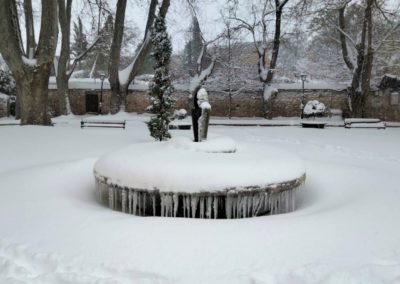 Los Jardines de la Real Fábrica de Paños, cubiertos por la nieve.