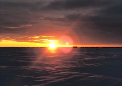 Atardecer sobre los campos cubiertos de nieve.