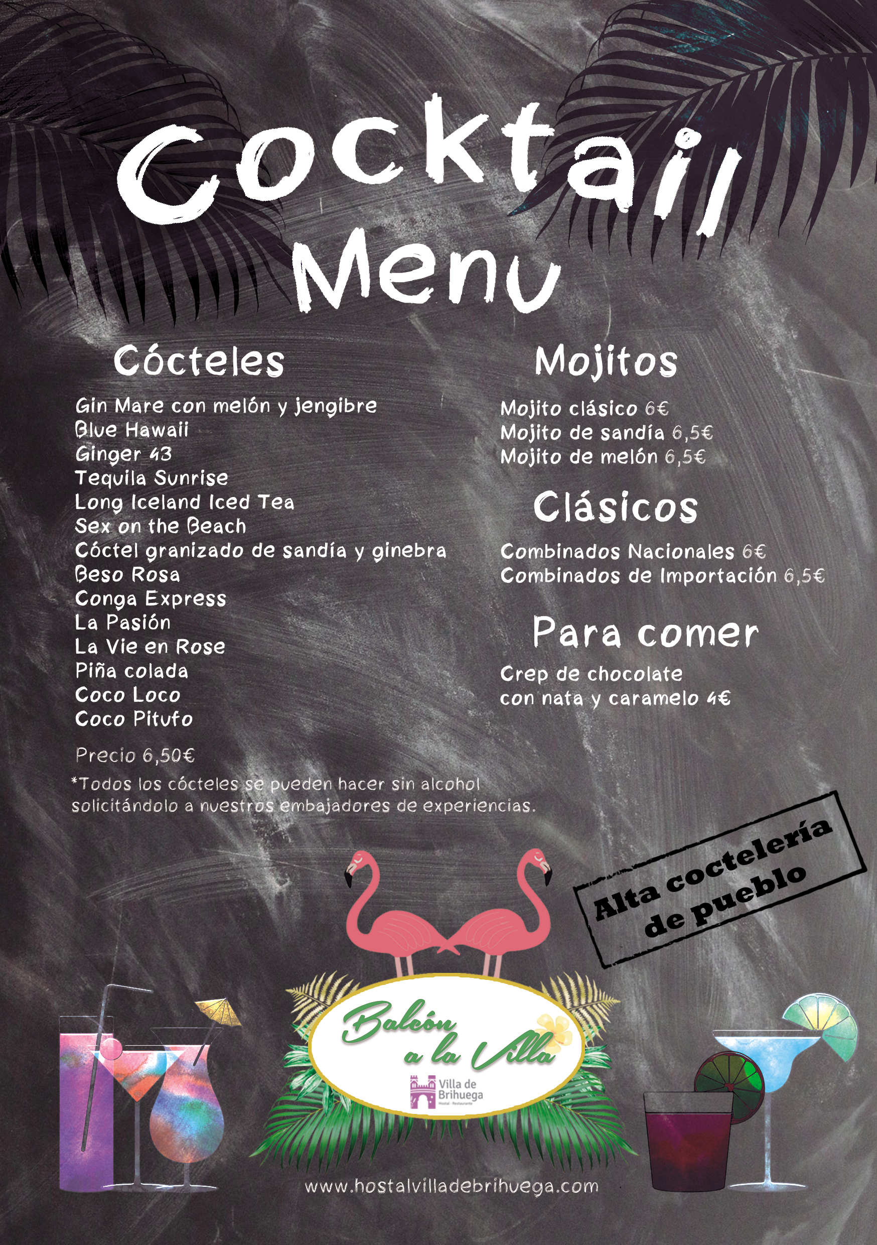 Carta de #altacocteleríadepueblo en el #BalcónalaVilla.